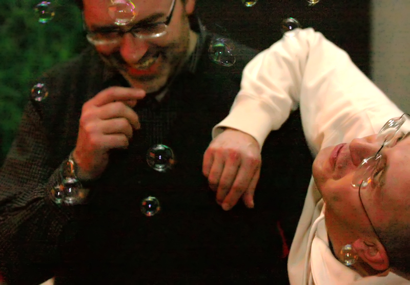 Съёмка шла по всей площадке в окружении летящих шаров.
