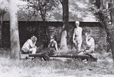 Немного посидели в тени около бара, который построен на старом фундаменте дома, в котором жили слуги Пусловских.