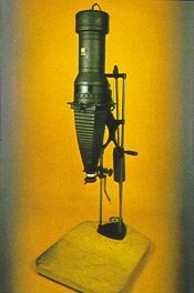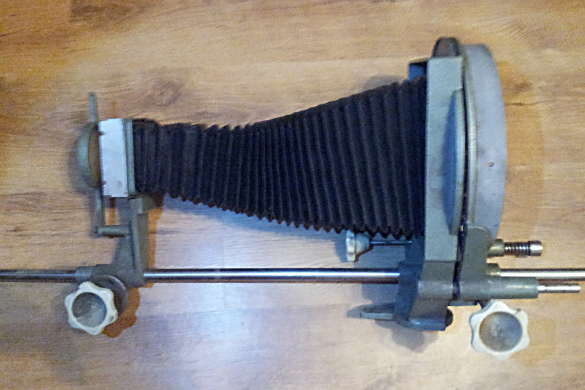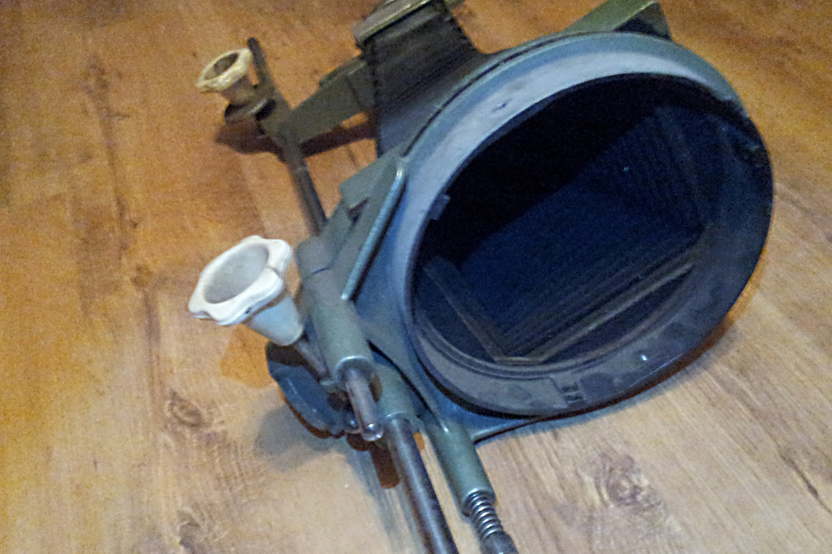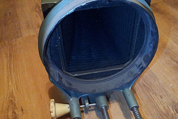 Возможно что это часть увеличителя? Смутила круглая заслонка в переди (по конструкции как шторка в фотоувеличителях, только фильтр не красный а мотово-белый, что бы это могло быть?)