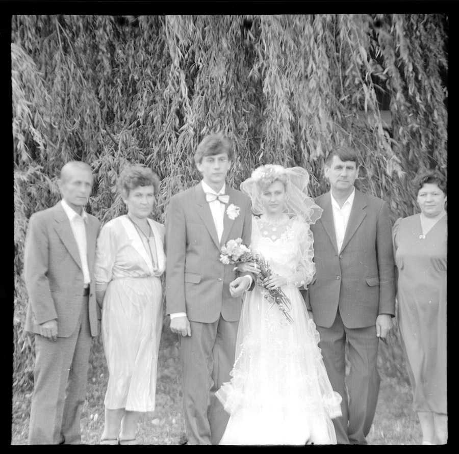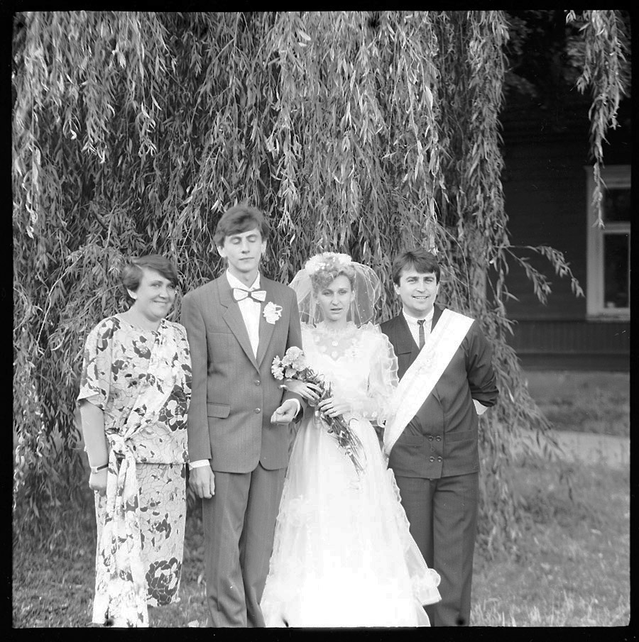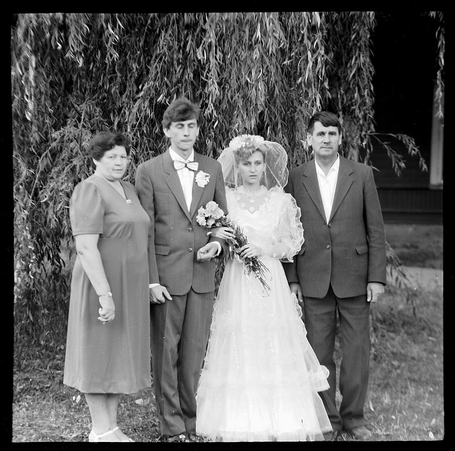Вытягивал, как мог. Перед нами привет из прошлого свадебной фотографии. Если кто-то вдруг узнает на этих кадрах своих родственников, обращайтесь, негативы у меня. :)