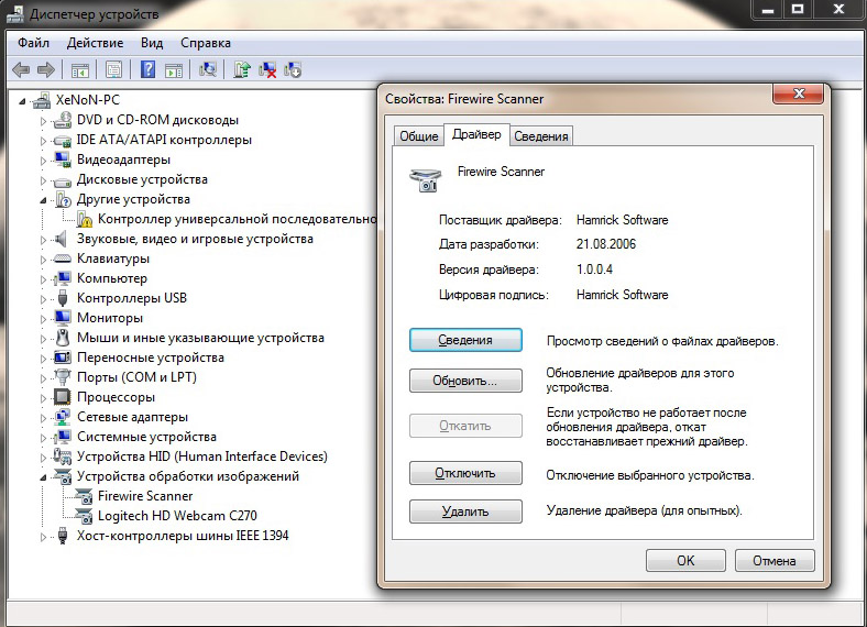 - Всётаки пришлось освободить на материнке один разьём под PCI (вытянул звуковую карту). На её место контроллер Firewire (IEEE1394) - PCI. Драйвера автоматом подхватило и установило - перезагрузка.