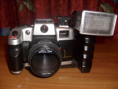 дешевая мыльница с фиксированным фокусом. стилизована формой под "серьезную" камеру. продавалась под тучей названий, например nippon.