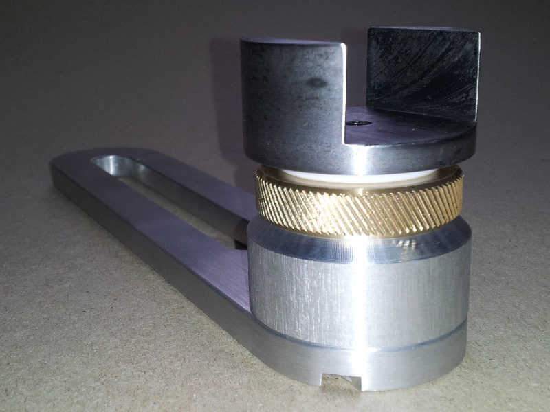 Некоторые детали надо ещё облагородить. После закалки оси с фрезерованным каналом, воронение легло пятнами. Слегка почистил, думаю что дальше можно с этим сделать. Попробую наверное грунтовать и красить. Ещё к планкам надо кольца крепить на винты. Так что окончательная шлифовка/полировка будет после всех разметок/подгонок. Латунной шайбой стопорится вращение оси, по пазам осей будет перемещаться профиль (там будут пазы, через них винтами к оси будет затяжка/отпускание). К профилю будет крепится механизм наклона и поднятия рамки. Этим и займусь в ближайшее время