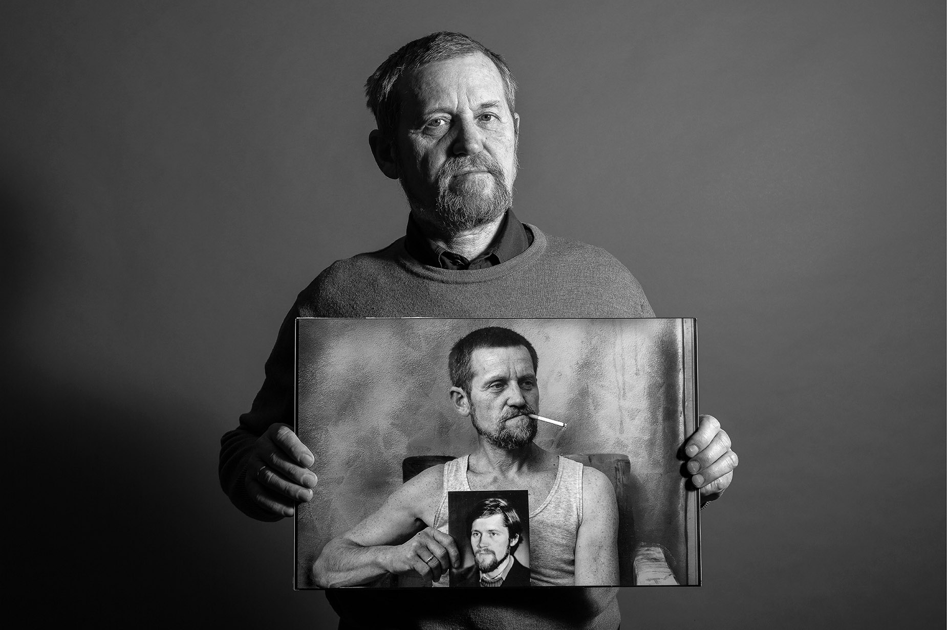 Снимок Вадима Качана из серии "Портрет с портретом, или снимок длинною в жизнь" 2014г. 7-мь фотографий из этой серии представлено на выставке.
