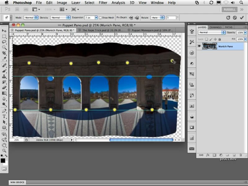 Реально эту технологию можно использовать не только для таких причудливых нужд, а ещё и для того, чтобы корректировать различные искажения, которые могут возникать на фотографиях. Вот, к примеру, панорамный снимок, который был скорректирован при помощи Puppet Warp.