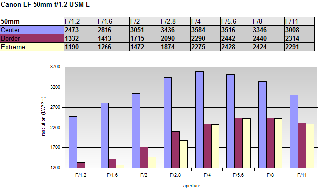 По табличке выходит лучше чем Canon EF 50mm f/1.2 USM L