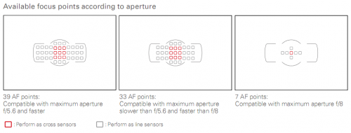 кто знает. как расположены 9 крестообразных датчиков автофокусировки тут?