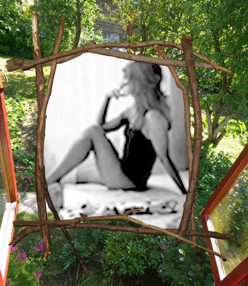 А затем наложил бы картинку с рамкой. Т.к. рамка прозрачная, то она бы закрыла вторую картинку только прутьями.