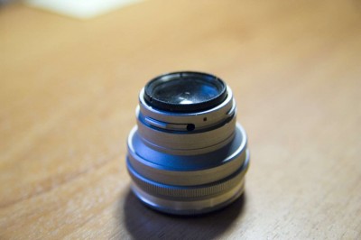 По сусекам поскрёб - нашёл объектив с надписью Юпитер-3. Только вот не пойму- это объектив без оправы, объектив для фотоувеличителя или что-то ещё? На нём нет фокусировочного кольца и байонет очень странный...