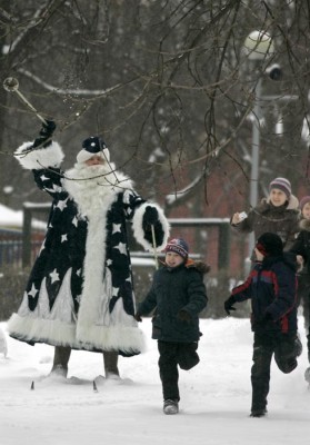 Прибытие Деда Мороза,на время Нового года, в городскую резиденцию, расположенную в парке Горького