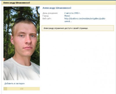 т.к. парнишка после сообщения ему закрыл для меня свою страницу, скриншот сделать уже не могу