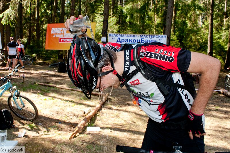 Было жарко, за время гонки участники выпили 100 литров припасенной воды)