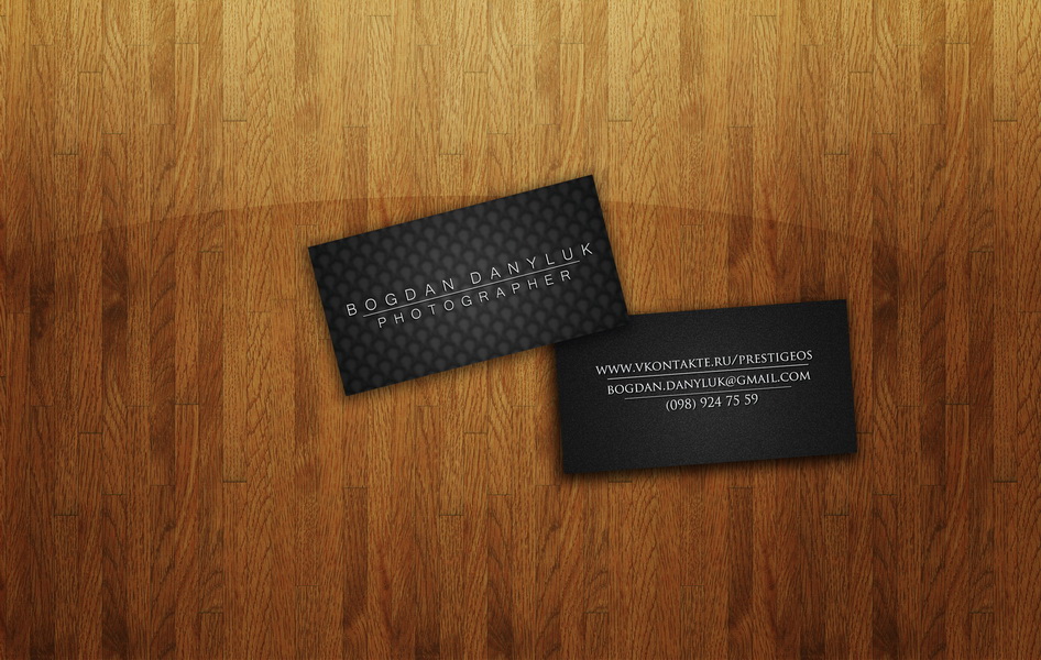 Перелопатя сотни разных визиток фотографов, дизайнеров и креативщиков все-таки сделал свою. Мне кажется не стоит лепить много инфы, картинок с объективами или камерами, а то и вовсе закидать свои фоты. Все должно быть сделано просто, заманчиво и со вкусом=). Визитка двухсторонняя, лицевая сторона (там где имя) будет покрыта УФ лаком, задняя обычная.