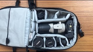 Оснащен встроенным фиксатором для штатива, крепежные петли системы SlipLock, компрессионными ремнями и большим количеством карманов. Наружный материал: водонепроницаемый 600D TXP и сверхпрочный 600D TXP.