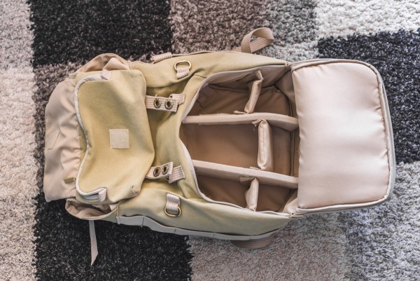 Много карманов, место для ноутбука 14", два спрятанных боковых кармана для воды и штатива, дождевик, формируемое внутреннее пространство с перегородками на липучках. Влазят две камеры, впышка и несколько объективов. Очень удобен в поездках: можно распределить документы, зарядки и прочие мелочи по разным карманам.