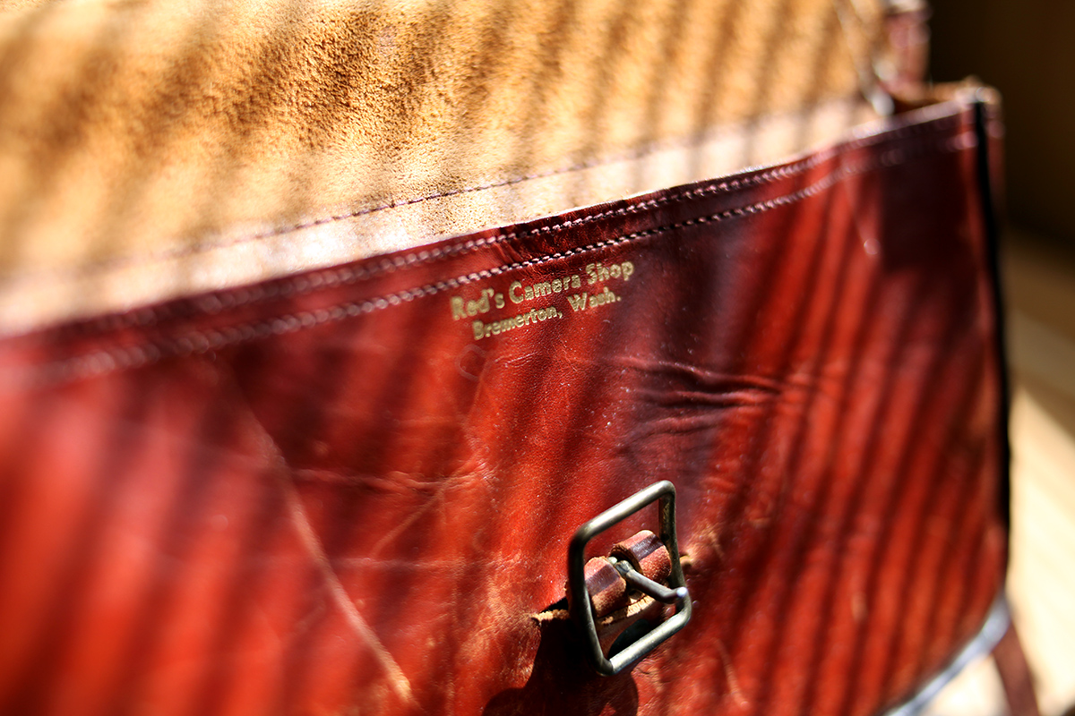 Сделано в США в 60-х. Вручную. Натуральная кожа. Стоила бешеных денег в молодости. Ремешок трескается, к сожалению. Молния на века. Помещается Хассельблад и доп. задник. Два дополнительных кармашка.