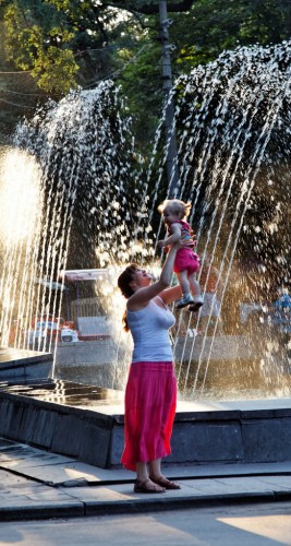Гуляли тетушки с детьми. Одна взяла у подруги ребенка и начала его подбрасывать. Есть еще пару вариантов этой фотографии с большим кадрированием.