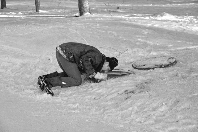 Далее,едем с другом за город,я за рулем,скорость 90,вижу на обочине картину,полтуловища из земли торчит,бросаю машину вправо под колеса грузовика,останавливаюсь за 100 метров,бегу с камерой наперевес как солдат в атаку....не успел,мужик голову из люка высунул,подежурил рядом да бестолку,но весело было как вспомню :lol: