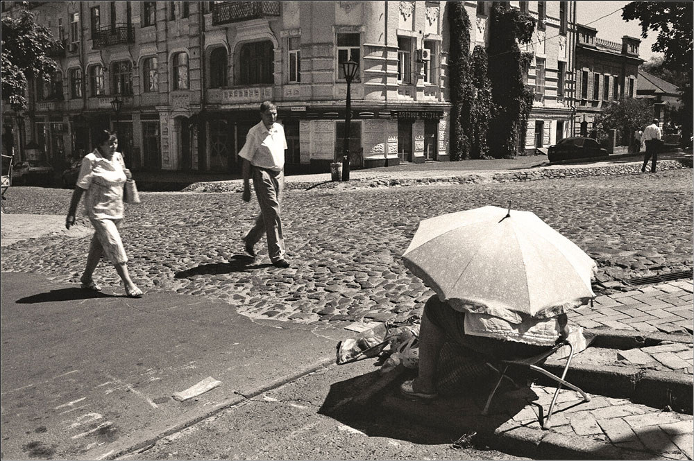 С тем цифрокомпактом попытки снимать стрит были безнадежной тратой времени. С тех пор как около года назад я освоил фотооборудование, я все еще убежден, что "цифра" - дело ...нескорого будущего. Прошлым летом (2005) я купил себе Canon Eos 1Ds Mark II для заказов, а также для концептуальной и архитектурной фотографии. Иногда я даже использую ее для "персонального творчества". Моменты, которые вы хотите запечатлеть, должны быть очень личными, интимными, близкими и ненавязчивыми фотографиями... так что можете выбросить эти семь килобаксов в мусорную корзину!