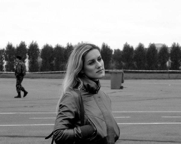 Подобравшись к торцу сцены подфартило сфотографировать пару раз Лущик и других теледзиу. Когда Лущик ушла из поля зрения, я обернулся и увидел эту одиноко стоящую тётю. На первом кадре плохо сфокусировался, а на втором она меня заметила и начала позировать.