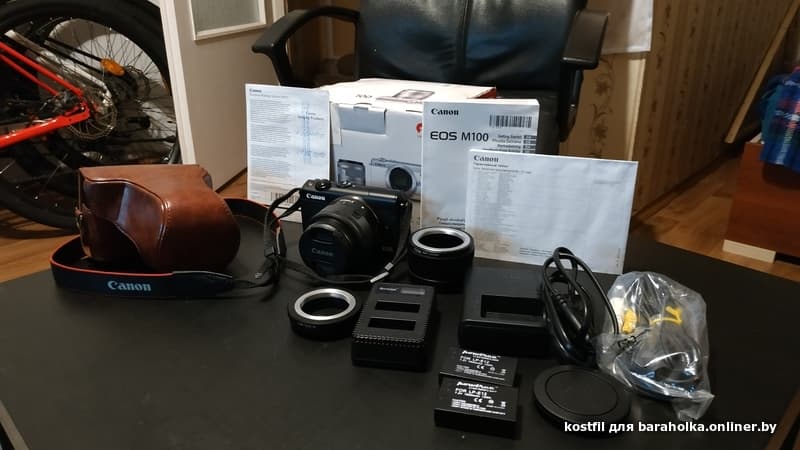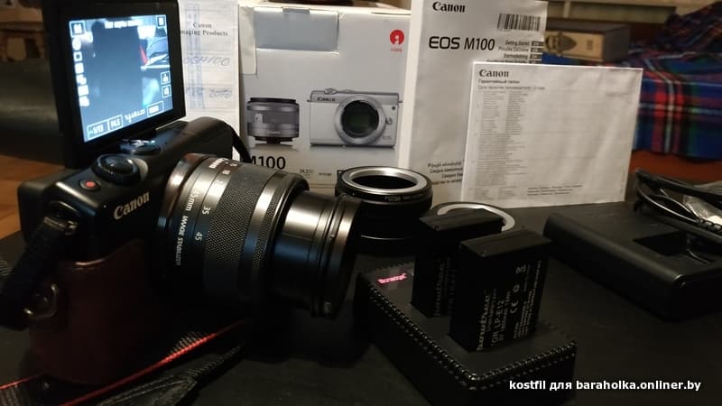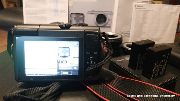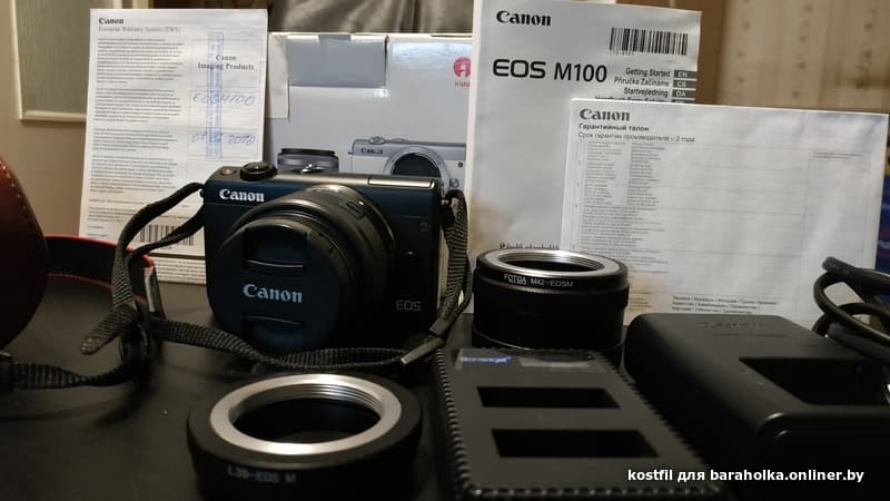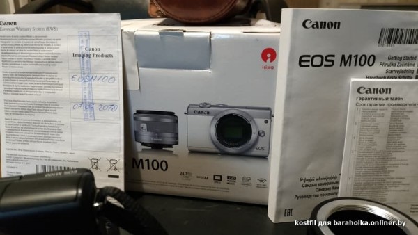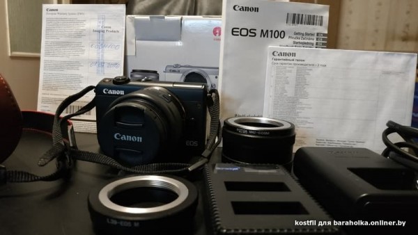 Продам Canon M100 kit 15-45mm F3.5-6.3. Куплен в 2019 году. Полный комплект (коробка, документы, зарядка)+зарядка (может работать от POWER BANK) и 2 аккума. Переходные адаптеры на М42 и М39 и очень хороший чехол) На экране пленка. Все в огне! 700 бел.руб. МТС +375 29 598-12-70 Костя.