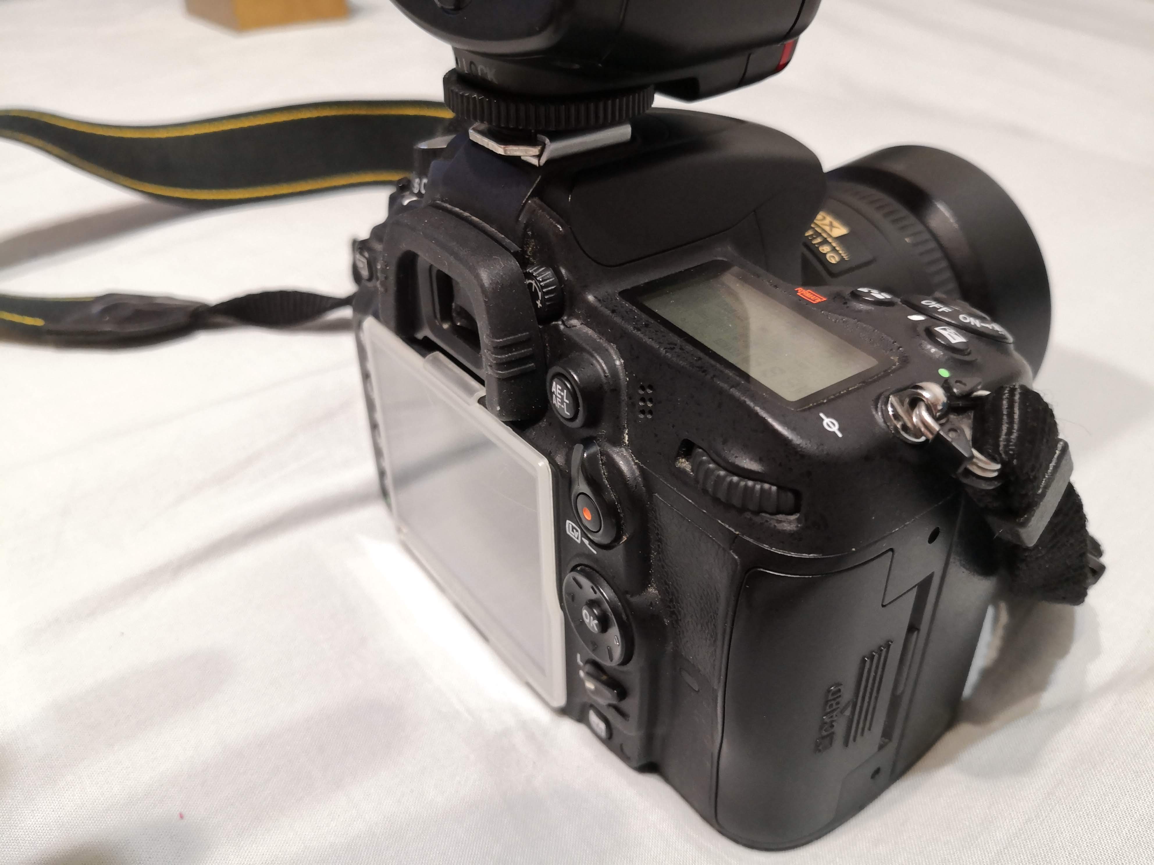 Фотоаппарат Nikon d7000. Покупал для семейной съемки. Первое время очень увлекся фотографией, купил пару фиксов вместо родного объектива, вспышку, но в последнее время пользуюсь все реже. Состояние очень хорошее. Все резинки на месте, все работает.