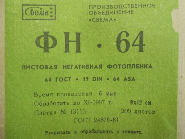 Начать новую тему Эта тема закрыта, вы не можете редактировать и оставлять сообщения в ней.  Фотоплёнка листовая 9х12 см ч/б ФН-64 200 листов в коробке
