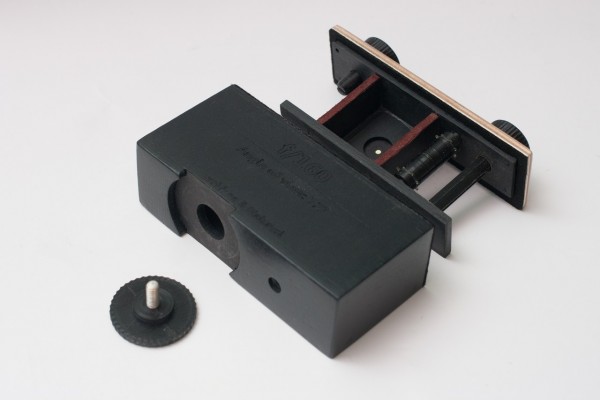 Таксама камера абсталявана простым і надзейным замком і металічным гняздом штатыва.