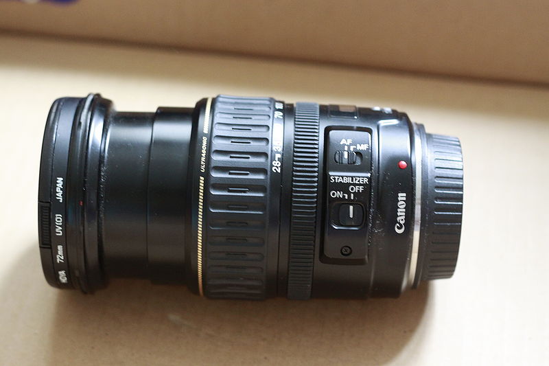 canon 28-135mm f/3.5-5.6 is хорошее состояние, есть небольшой скол пластика возле обода под фильтр, так же небольшой люфт, но работает хорошо. 130$