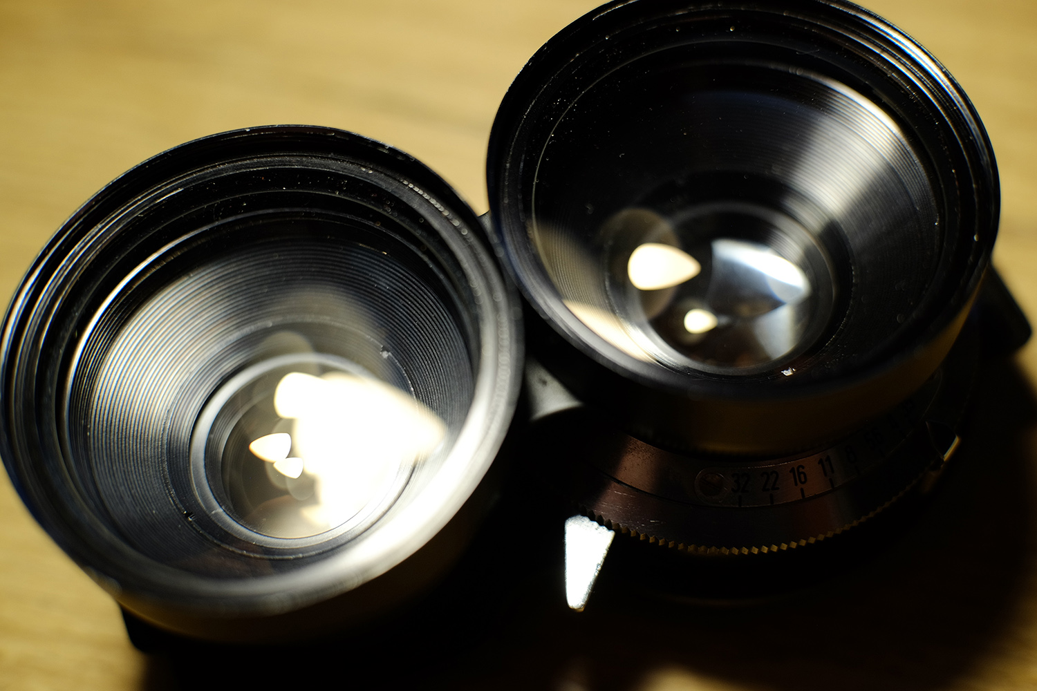 Механика в порядке, съёмочный объектив в идеальном состоянии, в верхнем есть дефект - в заднем линзоблоке между линзами на самом краю то ли брак склейки, то ли микротрещина - понять сложно, на ощупь не ощущается, находится под линзой. Достался таким от предыдущего владельца. На работу/картинку это никак не влияет. Отмечен на фото