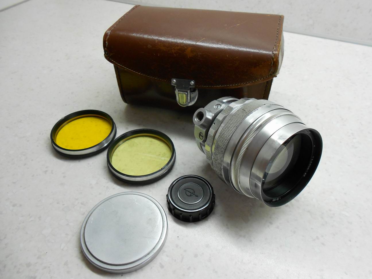 Известнейший сверхсветосильный портретник на зеркальные фотоаппараты с присоединительной резьбой М39, 1.5/85, No. 621059, 1962 г., всё линзы совершенно чистые, диафрагма без проблем, ход фокусировки плавный, ещё нетугой для не менявшейся смазки, внешне очень хорош, обе крышки, два светофильтра: ЖС-12 и ЖС-18, футляр, для полноты комплекта не хватает только оранжевого фильтра ОС-12