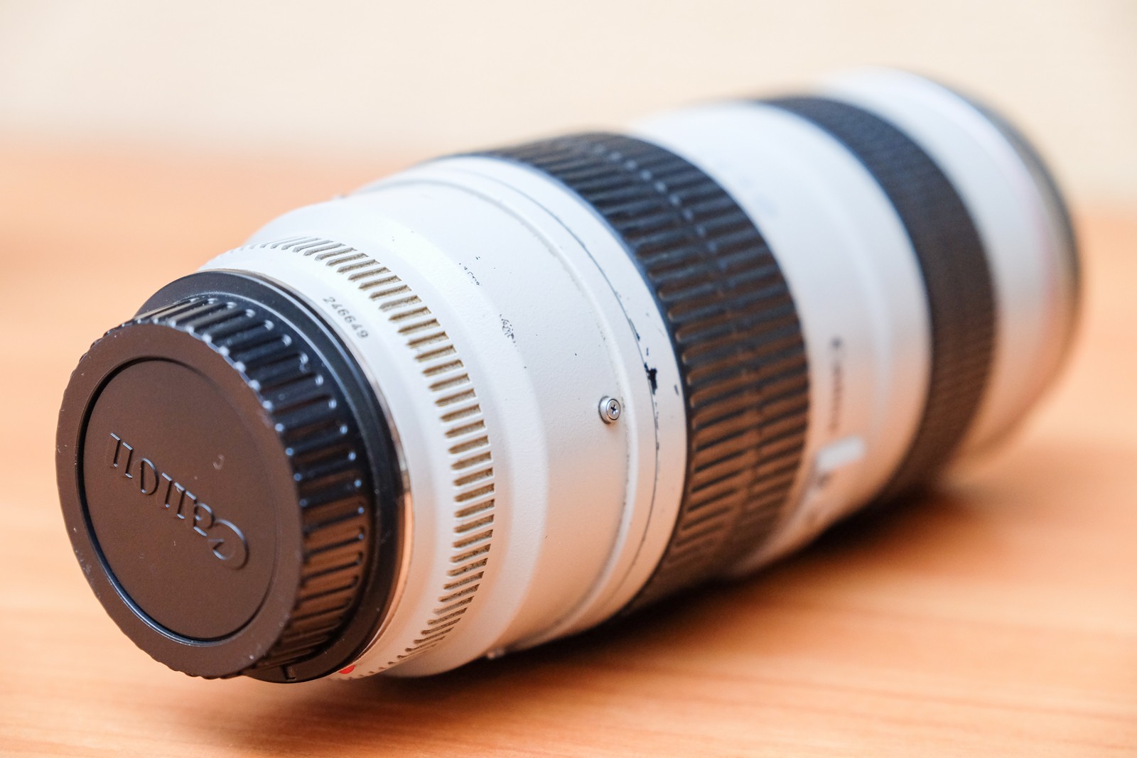 Продам объектив Canon EF 70-200mm f/2.8L USM. Внешнее состояние 7/10 - местами затерлись буквы, обшарпана белая краска. Идеальное рабочее состояние. Почти все время был с защитным фильтром. В комплекте оригинальная бленда и пустая коробка.